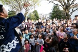 清祓いと餅まきの儀式には多くの大人・子どもたちが集まり、建物に礼をし、撒かれるお餅やお菓子に手を伸ばしていました。