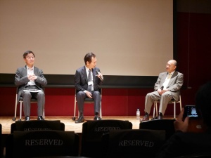 開会あいさつ後は、(株)地球の歩き方T&E取締役 藤岡氏、弊社代表取締役 中内、地方創生総括官 唐澤氏 の3名がパネリストとして登壇、「地域社会のありかたと中長期的な展望」をテーマにリレー報告会が行われ、中内よりこれからの街づくりの考え方について、CSV推進室 横谷より弊社が取り組んできたコミュニティ・CSVの取組について紹介いたしました。報告会の後は、3組の登壇者によるパネルディスカッション。他業種でありつつも共通の社会課題を持つ三者が、お互いに質疑しあい意見交換。会場参加者による質疑も交え熱い議論が繰り広げられました。