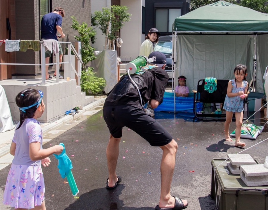 分譲地内でのBBQは恒例となっているので、準備は買い出し程度でOK。もちろんセッティングはみんなで用意をして楽しめるようになっています。