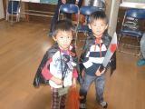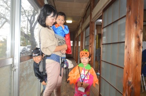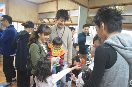 可愛い仮装をした子ども達が順番に並んでビンゴカードを引いくお手伝い。「ビンゴ!!」の声にみなさん拍手で祝福。子どもたちはみんなお菓子をたくさんもらえて大満足な様子でした♪