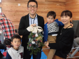 後半は、グレイスオブガーデン様を講師に迎え、みなさんでクリスマスの伝統的な壁飾り”スワッグ”を作りました。数種類のグリーンを束ねてオーナメントやリボンの配置していきます。ご家族で協力してみなさん素敵な作品が出来上がりました。