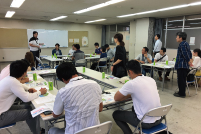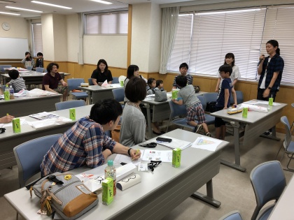 説明会後の交流会では、ご家族同士で紹介タイム。家族構成や、休日の過ごし方など紹介しあいました。