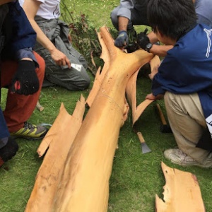 切り出された枝は、南房総に運ばれ、翌日に開かれた廃校活用プロジェクト「へぐりマルシェ」(旧平群小学校/南房総市平久里))にて「枝色鉛筆づくりワークショップ」の材料としても利活用されました。当日は大盛況で、たくさんの子供たちに色鉛筆としてわたっていきました。思い出深い神棚と槇の木の丸太もリメイクし、お施主様の手元に戻る予定です。
