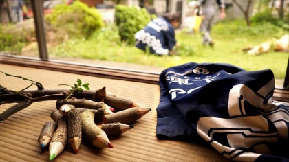 切り出された枝は、南房総に運ばれ、翌日に開かれた廃校活用プロジェクト「へぐりマルシェ」(旧平群小学校/南房総市平久里))にて「枝色鉛筆づくりワークショップ」の材料としても利活用されました。当日は大盛況で、たくさんの子供たちに色鉛筆としてわたっていきました。思い出深い神棚と槇の木の丸太もリメイクし、お施主様の手元に戻る予定です。