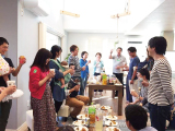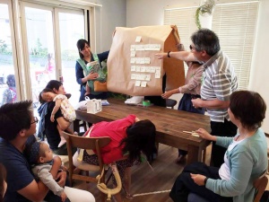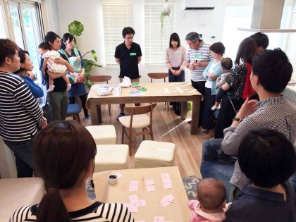 当日は、「柏たなかの暮らしを楽しみたい!」とサポーター登録された18名(プラス赤ちゃん7名)が参加。街のコンセプト(アメリカ6つの都市をモチーフとした街区デザイン)もあり、「えー、そこのカリフォルニアから来ました○○です」「ちょっとフロリダから来た○○です(笑)」と、この分譲地ならではのユニークな自己紹介で最初から大盛り上がりでした。