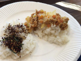また当日は、一般社団法人減災ラボさんにご協力いただき、もうひとつのタウンコンセプトである【減災】×【コミュニティ】の実走の第一歩として、「ミニ炊出し」(ポリ袋でできるごはんとトマトキーマカレー)づくりも実演。ワークショップ後の交流タイムで試食をしてもらいつつ、ローリングストックの大事さ、日々を楽しみながらいざの備えを考えることこそ、防災・減災の一歩であることをお伝えさせてもらいました。