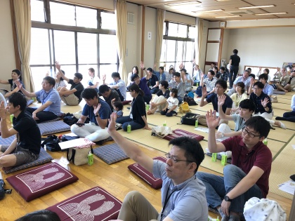 後半は、一般社団法人減災ラボさんにご協力いただき「防災コンテンツ」を提供。「いざという時どう行動するのがベストなのか」スクリーン映像による災害事例の紹介や、クイズ形式でいざというときの備えを学ばれ、共有されていました。