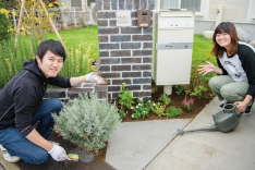 植栽のプロを講師に迎え、各世帯の門柱の下など空いているスペースにご自身で草花の植え込みをしていきます。