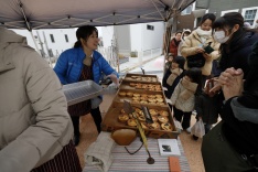 最後には主催による餅まきを実施。雪もちらつく中たくさんの人が集まり、最後まで大盛り上がりでイベントを終えました。
