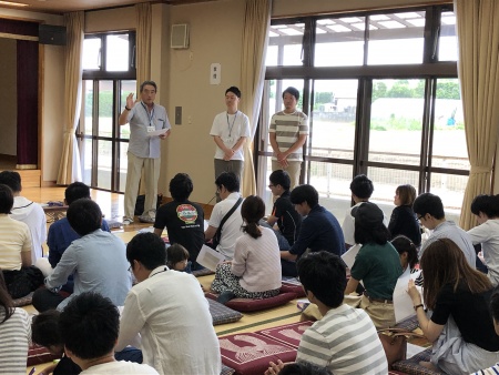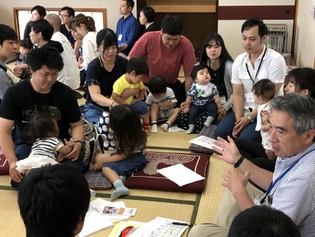 説明会後の交流会では各班にわかれ、ご家族の紹介タイムに。