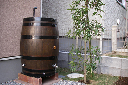 パレットコート浦和 緑花未来区の一部に雨水樽を設置いたしました。