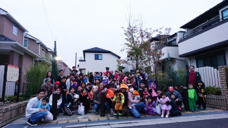 イベントが始まると子どもたちがお菓子をもらいに分譲地を回っていきます!ひと通り回ったらスタート位置に戻ってコール!全員がゴールしたら写真撮影をし、最後はくじ引き大会で盛り上がりました。