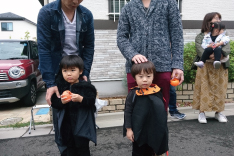 イベントが始まると子どもたちがお菓子をもらいに分譲地を回っていきます!ひと通り回ったらスタート位置に戻ってコール!全員がゴールしたら写真撮影をし、最後はくじ引き大会で盛り上がりました。