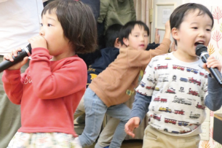 小さな子どもたちは、大人が見守る中、会場奥に設置した滑り台や、ボールプールの遊具で遊び、小学生の子どもたちは、流行りの「パプリカ」をはじめカラオケで大盛り上がり!大人は、交代で子どもたちの相手をしながら歓談で盛り上がり、家族間での交流も多く図れたひとときでした。