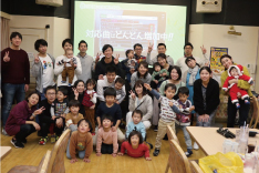 当日は、13家族が参加。みんなで集合写真をとってクリスマス会のスタートです。