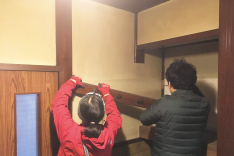 後日、リユースとして古材を活用しリノベーションなどの取組みをされているco-designstudio様にご協力をお願いし建物の建具やサッシ、照明などのレスキュー作業が行われました。