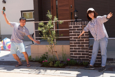 続いて、今回みなさんに挑戦していただく門柱まわりなどの空いているスペースへの草花の植え込みの方法をレクチャー。分譲地全体の植栽を管理する東邦レオ(株)片山さんによるデモンストレーションを交えながらのレクチャーにみなさん注目。今回植える草花の植え方、レイアウトの仕方をアドバイス。