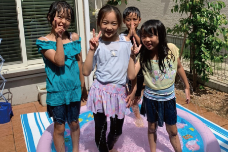 ちょうど単身赴任から帰ってきた方もいて、みなさん久々に再会できて嬉しそう。大人たちはおつまみを食べながらドリンクを片手に交流を楽しみ、子どもたちは水遊び、お菓子ジャンケンなどで盛り上がりました!