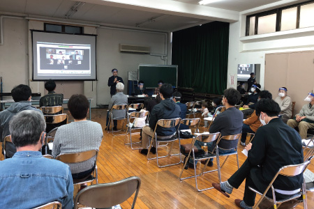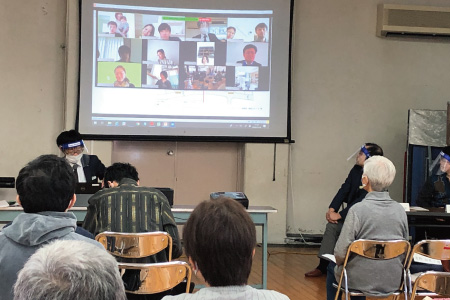 コロナ禍の中、お客様に安心してご参加いただけるよう、感染予防対策を実施。近隣自治会館での参加とビデオ会議ツール「zoom」を活用したオンラインでの開催となりました。