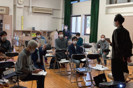 当日は、松ヶ丘北自治会の役員の皆様から自治会についての説明をしていただきました。また、こちらの分譲地は、みなさんでまちの景観を維持し良好な住環境を高めていくための管理組合があります。弊社より街づくりの想い、管理組合の概要と規約のポイントなどをお話しさせていただきました。会場参加の方もオンラインで参加の方もみなさん真剣に耳を傾けてご質問され、みなさんで情報を共有されていらっしゃいました。