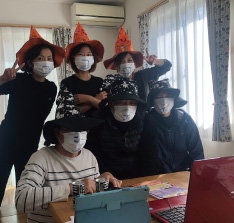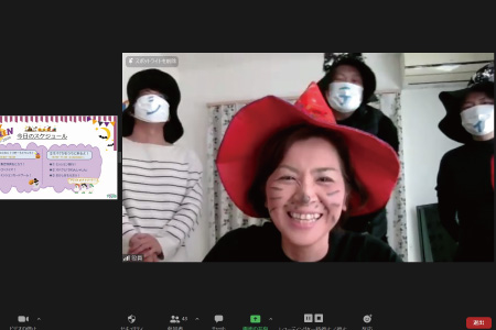 オンラインゲームを楽しんだ後は、お子様向けのイベント企画「オバケがおうちに来ちゃうかも!?」オバケが各お宅に訪問します。マスクを着用して感染対策もばっちり☆オバケの訪問にワクワク・ドキドキしながら仮装をして待機。