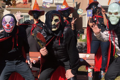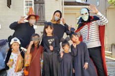 最後にオバケと一緒にそれぞれの自宅前で思い出写真を撮りました。