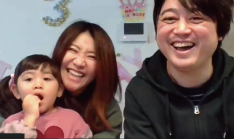 「聞こえますか?我が家は3人家族です。うちの子今、オットットのお菓子食べてます!」