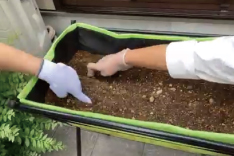 野菜にまつわる○×クイズで楽しく学んだあとは、オクラの種取り体験です。農家さんによるデモンストレーションを交えながらのレクチャー。採れたての種は参加者からひと家族代表いただき、農家さんと一緒に菜園スペースへ種まき、水やりまでをオンライン中継。参加の皆さんからは育て方などのいくつも質問がみられ、関心の高さと、楽しみにされている様子がうかがえました。