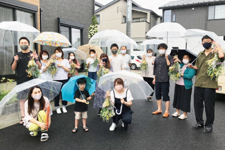 お名前ビンゴというゲーム形式で行います。ビンゴカードのマスに交流した方のお名前を記入していきます。自己紹介の他に"近隣でイチ押しの美味しいお店は?" "分譲地のみなさんで一緒にできたらいいことは?"をテーマに、みなさんで情報交換をしながら交流を図っていただきました。