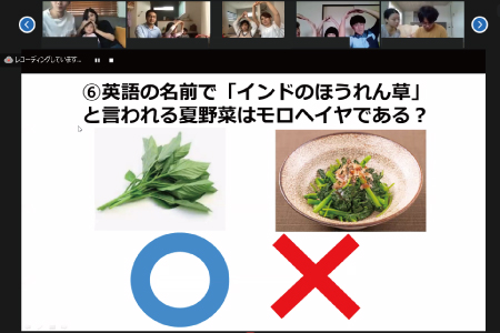 みなさんクイズに参戦、オンライン画面に向けて○×を出し合い大盛り上がり!農家さんによる季節の野菜を使ったレシピ紹介コーナーもあり、大人も子どもも楽しく学びながら交流を深めるひと時となりました。