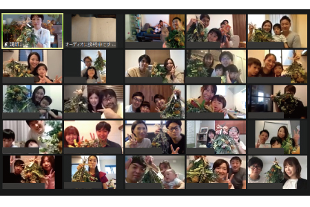 最後は、出来上がったスワッグと一緒にオンライン記念撮影。楽しいワークショップと交流を深めるひと時となりました。