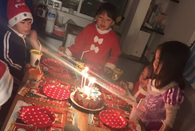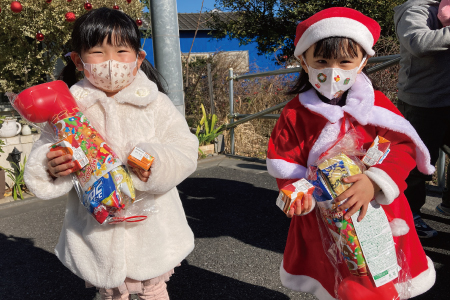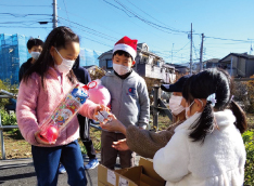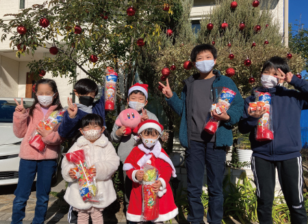 「子ども達にお菓子のブーツやジュース&ちょっとしたプレゼントを配ってクリスマス気分をみんなで味わってもらいたい。」