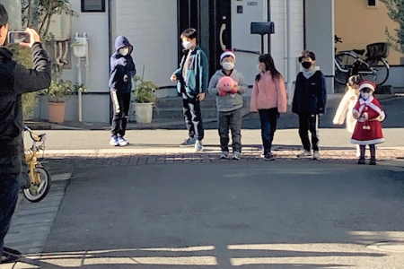 「子ども達にお菓子のブーツやジュース&ちょっとしたプレゼントを配ってクリスマス気分をみんなで味わってもらいたい。」