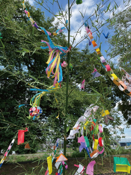 イベント当日は梅雨が明け、夏真っ盛り!太陽を楽しみながら分譲地公園内にある自治会館”みずべのアトリエ”へ。地域のみなさんも足を運んでくださり大盛況です。かわいい浴衣を着ておめかししている子どもたち♪みんなで願い事を書いた短冊を笹の木に飾り、七夕&夏祭りモード全開に☆