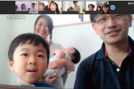 スタート時間が近づき次々にオンラインに入室してきます。まずは、はじめましての自己紹介から。お名前、ご家族紹介の他に「最近あったいいこと」を発表していただき、みなさんでご挨拶をしていただきました。