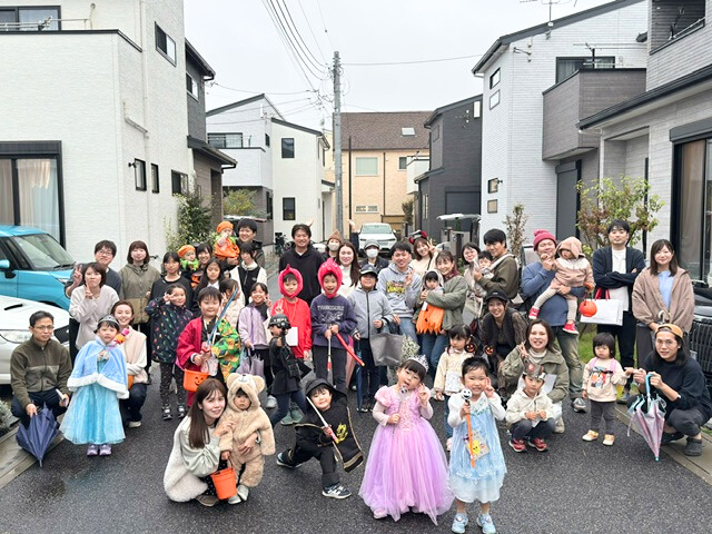 2022年10月23日(日)「アンパサンド大宮・大和田(全40邸/2019年分譲)」にて、ハロウィンパーティが開催されました。分譲地で初めて「マチトモ!サポート」を利用して企画された交流イベントです。