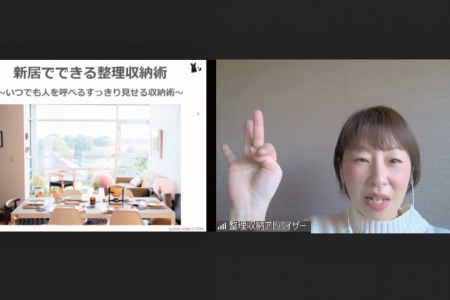 使い方次第で大きく変わる収納の活用方法を、整理収納のプロがアドバイスしてくれる、収納コンシェルジュサービス。ビデオ会議ツール「Zoom」を活用したオンラインでの講習&交流会へ、当日ご参加いただいたのは6つの分譲地、6世帯のご家族です。