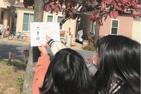 子どもたちはお菓子をもらってうれしそう。また、公園内に散りばめられたハロウィンにちなんだクイズに挑戦したり、コウモリを投げて網に引っかかるゲームを夢中で楽しんでいました。