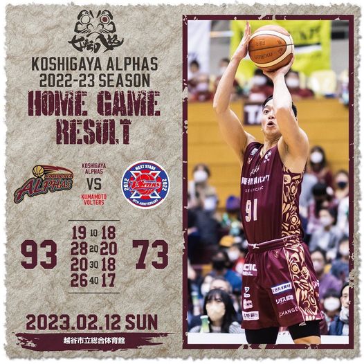 <越谷アルファーズ試合速報>WIN‼️ WIN‼️ WIN‼️ ここからまた1勝ずつ積み上げてい行きましょう‼️