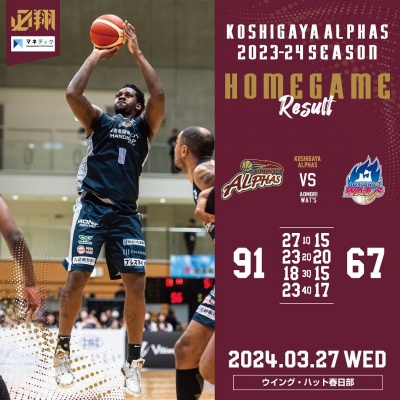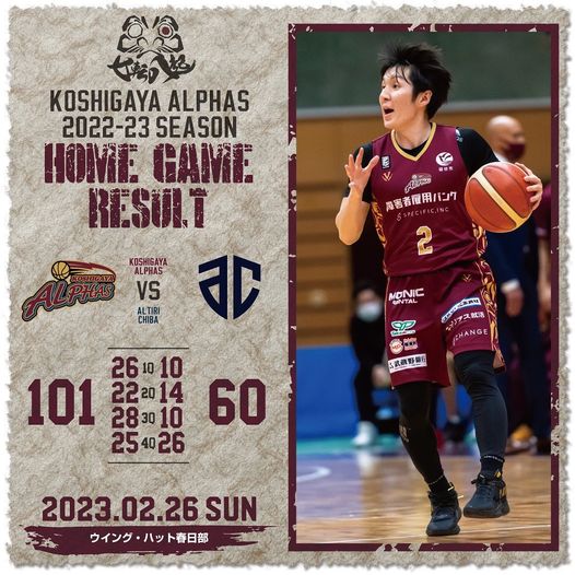 <越谷アルファーズ試合速報>Great WIN‼️ B2東地区首位奪還