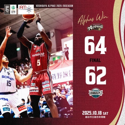 <越谷アルファーズ試合速報>熱い接戦を制し春日部3連戦を3連勝で締めくくりました!
