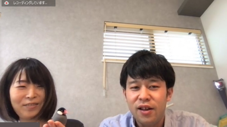 かわいい文鳥さんの登場に微笑む場面も。和やかな雰囲気の中、みなさんでご挨拶をしていただきました。