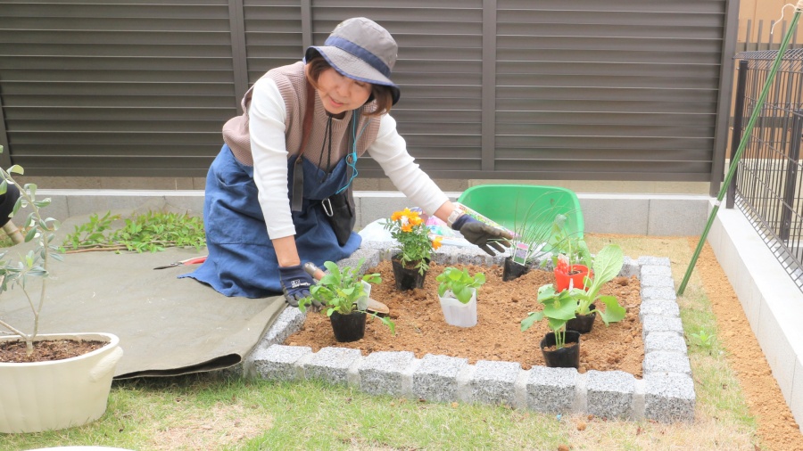ビー・グレイス梅郷 紡ぎの街は、各戸に家庭菜園スペース「ポタジェ」が設けられてあります。今回、みなさんの交流の機会と野菜の苗を植えていただくワークショップを企画・開催しました。