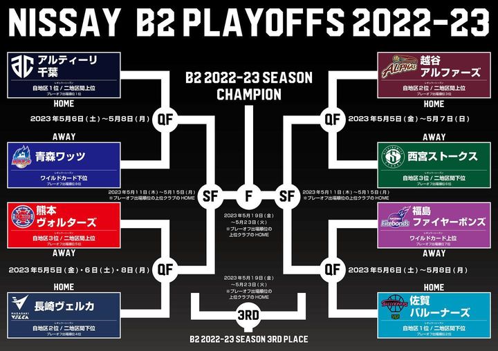 <越谷アルファーズ試合速報>日本生命 B2 PLAYOFFS 2022-23 組み合わせ決定