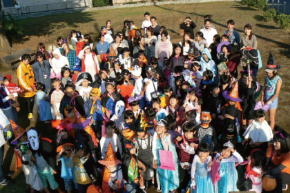 昨年から始まった「ハロウィンイベント」。イベントのきっかけは、幼稚園のバス待ちの時に話が始まったそうです。昨年に引き続き、地域の方々と一緒のハロウィンイベントとなりました。参加人数も昨年以上の36世帯、71名の子供が参加しての大きなイベントとなりました。