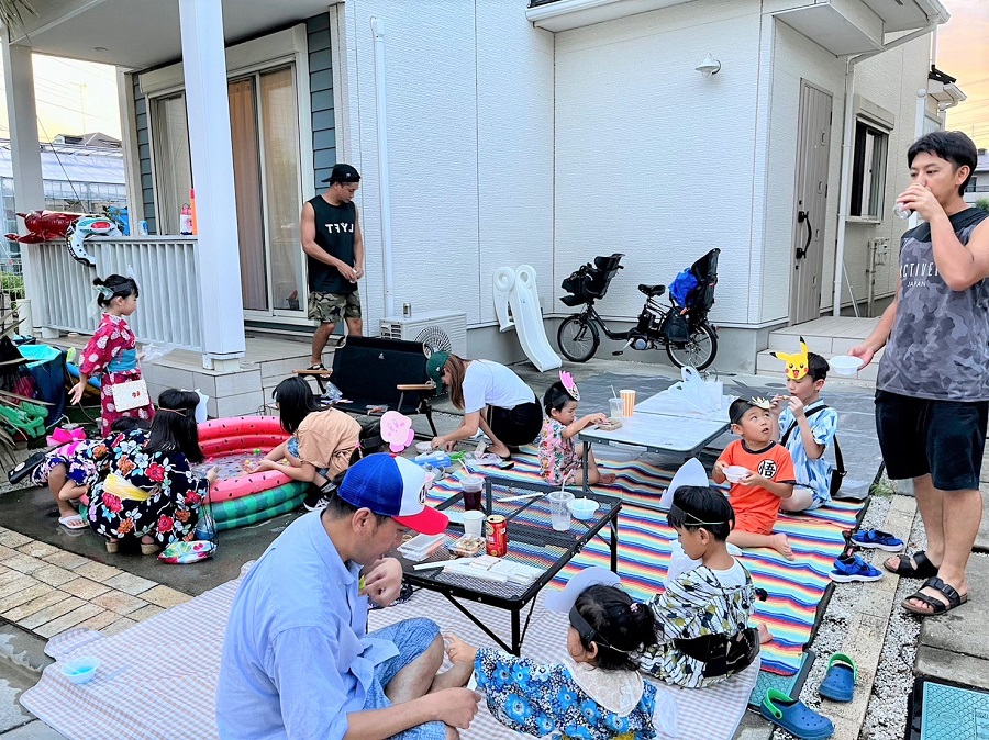 「昨年、初めて分譲地で夏祭りを開催し、今回2度目でした。昨年に比べ、みなさん気合いの入れようが違い、食べ物、ゲームなどお店の数も多く、子ども達も大喜びでした。夏のお楽しみとしてまた来年も開催出来たらいいな、と思います」