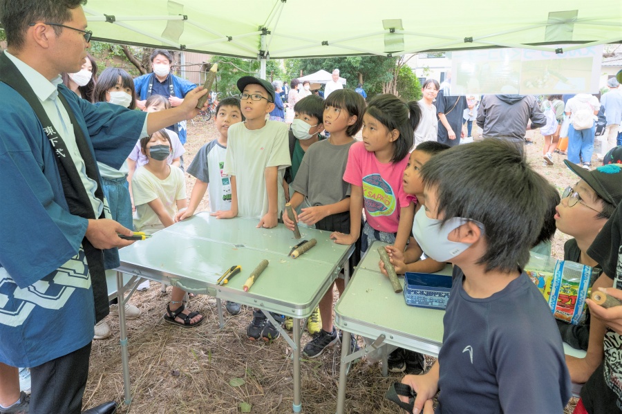 最後は庭園内の木の枝をリメイクして色鉛筆づくりを。子どもたちがわいわいと枝を削り、カラフルでかわいらしい色鉛筆に変身しました。いつまでも思い出として手元に残していただけたら嬉しく思います。