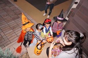 参加して下さったお宅からお菓子をもらい歩く子供たち。それぞれ仮装しての参加です。手作りしたドレスもあれば、かわいいお人形さんのようなお子さんも。子供たちはもちろん、大人も気合いの入った仮装で参加していました。