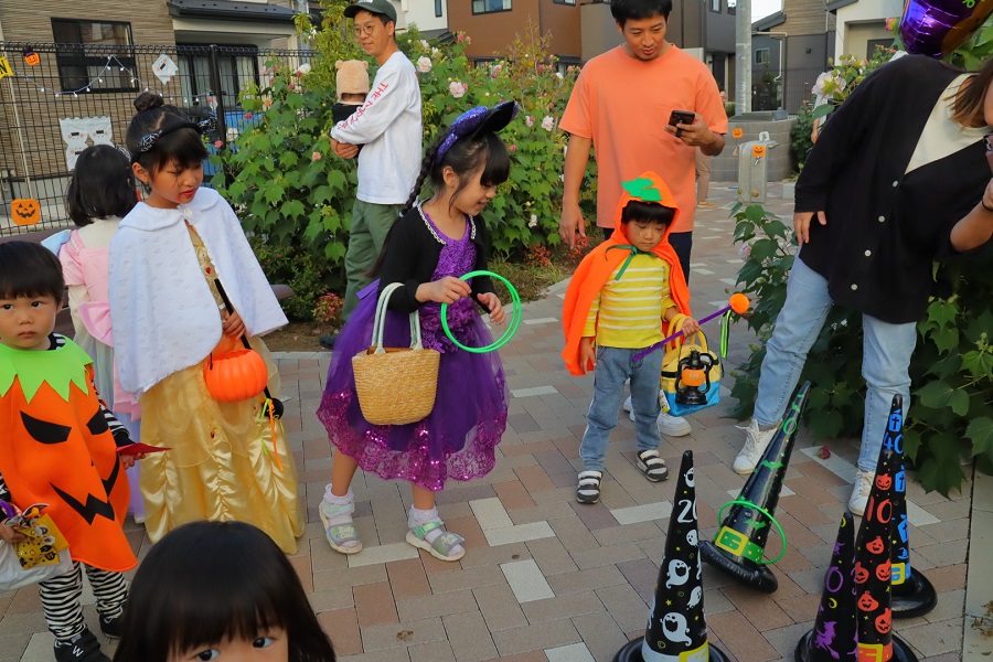 イベントが始まると子供たちがプリンセスやかぼちゃさんなどのかわいい仮装をして登場☆つりゲーム、魔女の帽子の輪投げなどのお楽しみゲームでお菓子をもらって大喜び♪みんなでお話ししながら、とても楽しそうに過ごしていました。大人たちも、たくさんの方と交流することができ、賑やかなイベントとなりました。