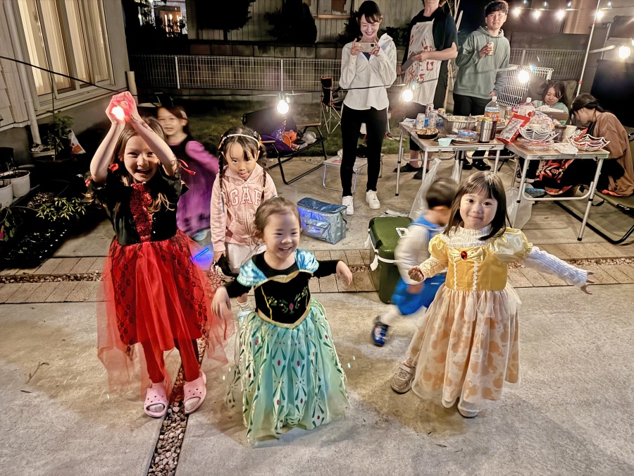 子どもたちは思い思いの仮装をして大はしゃぎ!お菓子パーティーで盛り上がって、お腹いっぱい食べていました。大人たちも写真を撮ったり、お喋りしたりと楽しい時間を過ごせました。